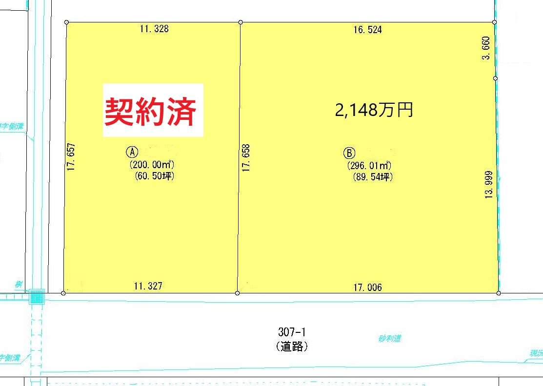| B区画 | 281.12㎡(85.03坪) | 281.12㎡(85.03坪) | 2040万円 | 24万円 |